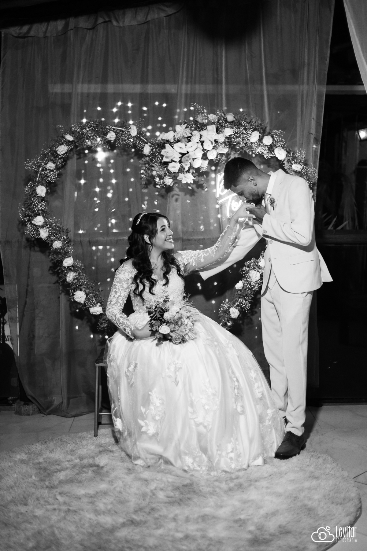 No casamento, essa sintonia transbordou. Eles estavam presentes, inteiros, vivendo cada segundo com emoção e alegria. A cerimônia aconteceu na charmosa capela do Recanto Vip, em Guaratinguetá, e foi seguida de uma celebração cheia de carinho, dança e sorrisos no salão do mesmo espaço.
