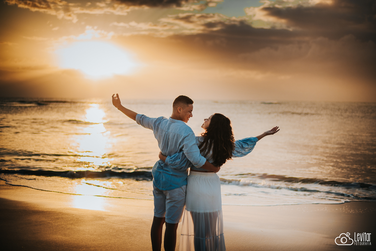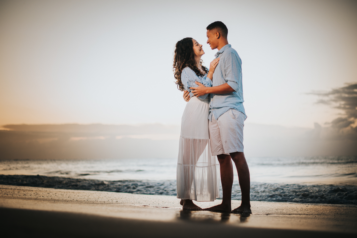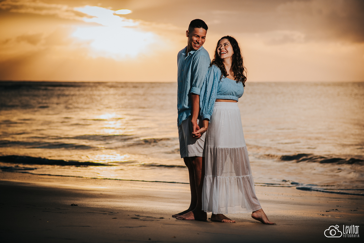 E, por último, mas não menos importante, queremos compartilhar uma experiência singular que vivenciamos ao lado desse casal encantador. Um dia antes do ensaio pré-wedding, decidimos explorar a praia em busca de cenários para fotografarmos. Foi então que avistamos uma casinha de pescadores a distância, um local perfeito para capturar a história de amor desse casal. A maré alta não nos permitiu chegar tão perto quanto queríamos, mas o destino reservava algo especial para nós. No dia do ensaio, a maré estava baixa, revelando uma paisagem de tirar o fôlego. A casinha de pescadores se tornou ainda mais encantadora, e sabíamos que aquela foto seria única e eternamente especial.