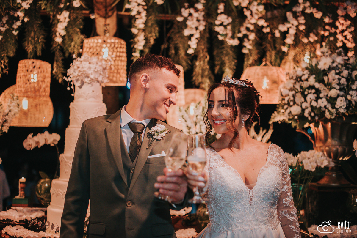 Após a cerimônia, a celebração continuou no Recanto Vip em Guaratinguetá, onde o casal recepcionou seus convidados com uma festa linda e cheia de alegria, com a organização impecável da assessora Day Ferreira, que cuidou de cada detalhe com muito carinho e profissionalismo.