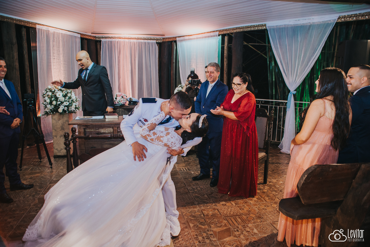 Em um dos espaços de Guaratinguetá, o Recanto Vip, Maria Clara e Willian viveram um dos dias mais inesquecíveis de suas vidas. O cenário escolhido foi a charmosa capela rústica do local, que trouxe um toque acolhedor e romântico para a cerimônia — o lugar perfeito para um amor cheio de história e emoção.