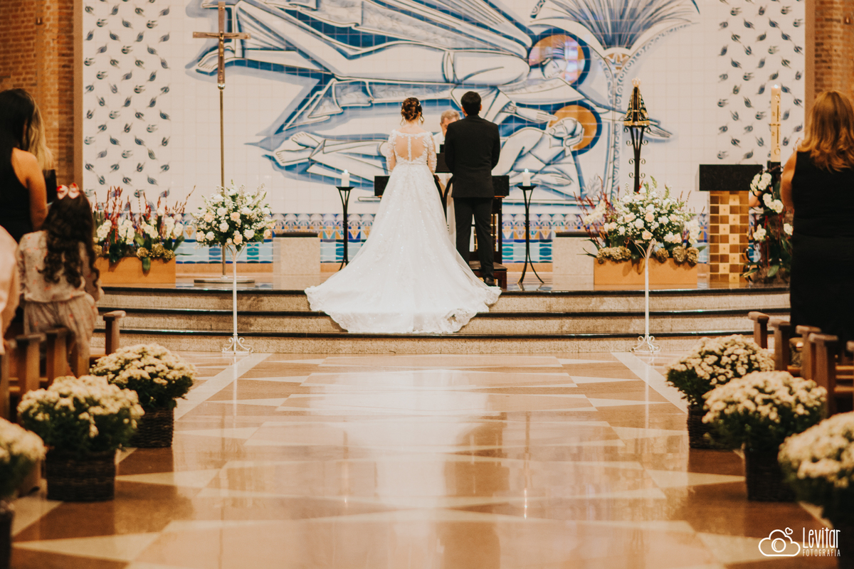 A cerimônia de casamento de Jéssica e Gustavo foi verdadeiramente especial. A emoção estava no ar enquanto os noivos trocavam votos de amor eterno diante dos familiares e amigos. A Capela de São José do Santuário estava imponente, com sua ampla extensão e detalhes arquitetônicos impecáveis. A luz natural realçava a beleza do momento e proporcionava um clima único para as fotos.