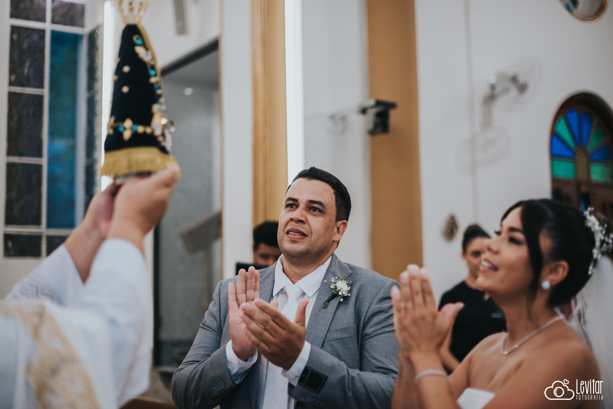 A cerimônia foi extremamente emocionante, com direito a Nossa Senhora Aparecida carregando as alianças, um momento de profunda devoção que emocionou a todos os presentes. Além disso, tivemos a presença do Santíssimo exposto para adoração, trazendo ainda mais espiritualidade para esse momento tão especial.
